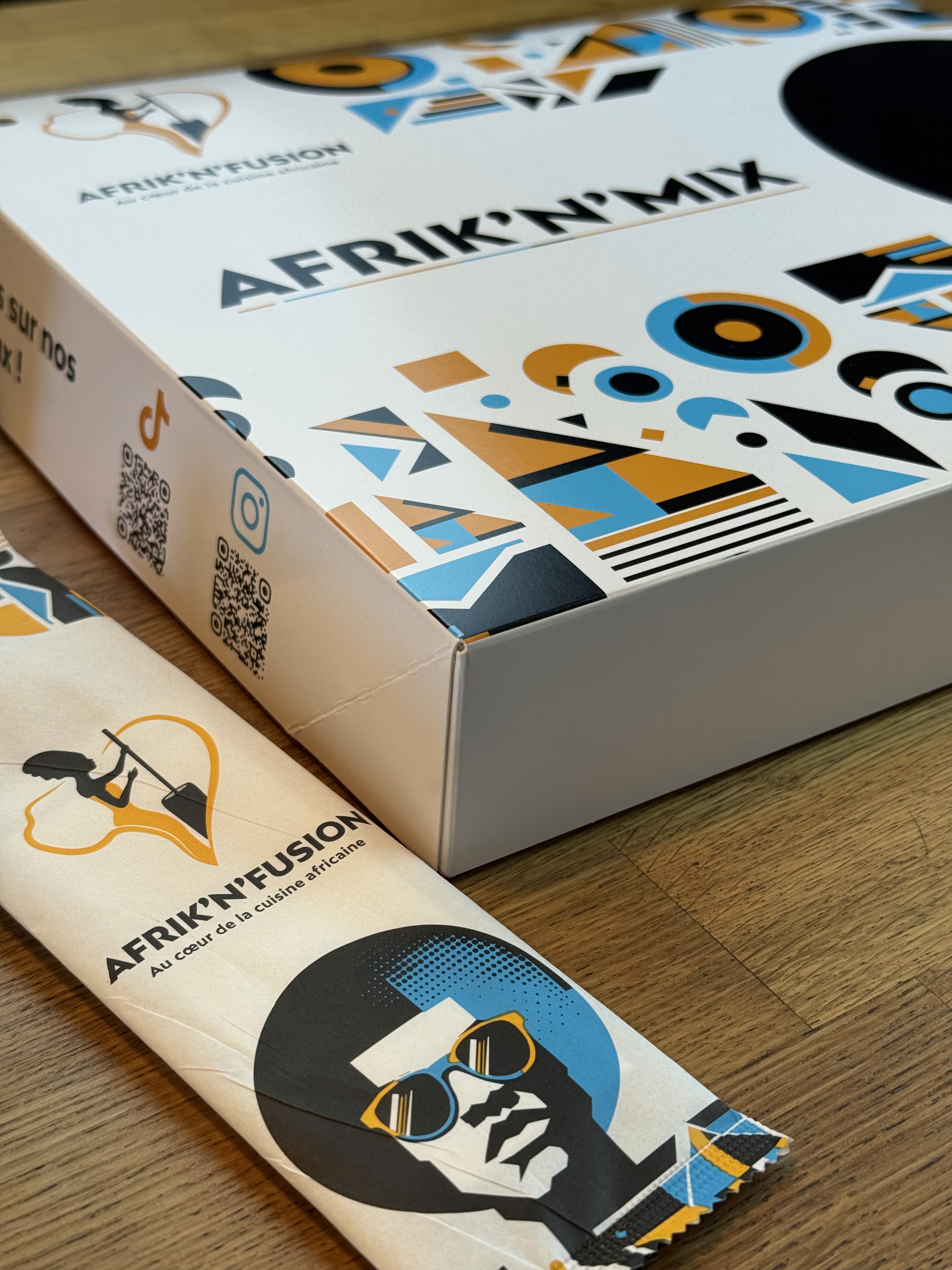 La marque Afrik’N Fusion a exprimé le souhait de refaire la gamme de vente à emporter afin de lui donner une identité visuelle plus moderne et percutante.